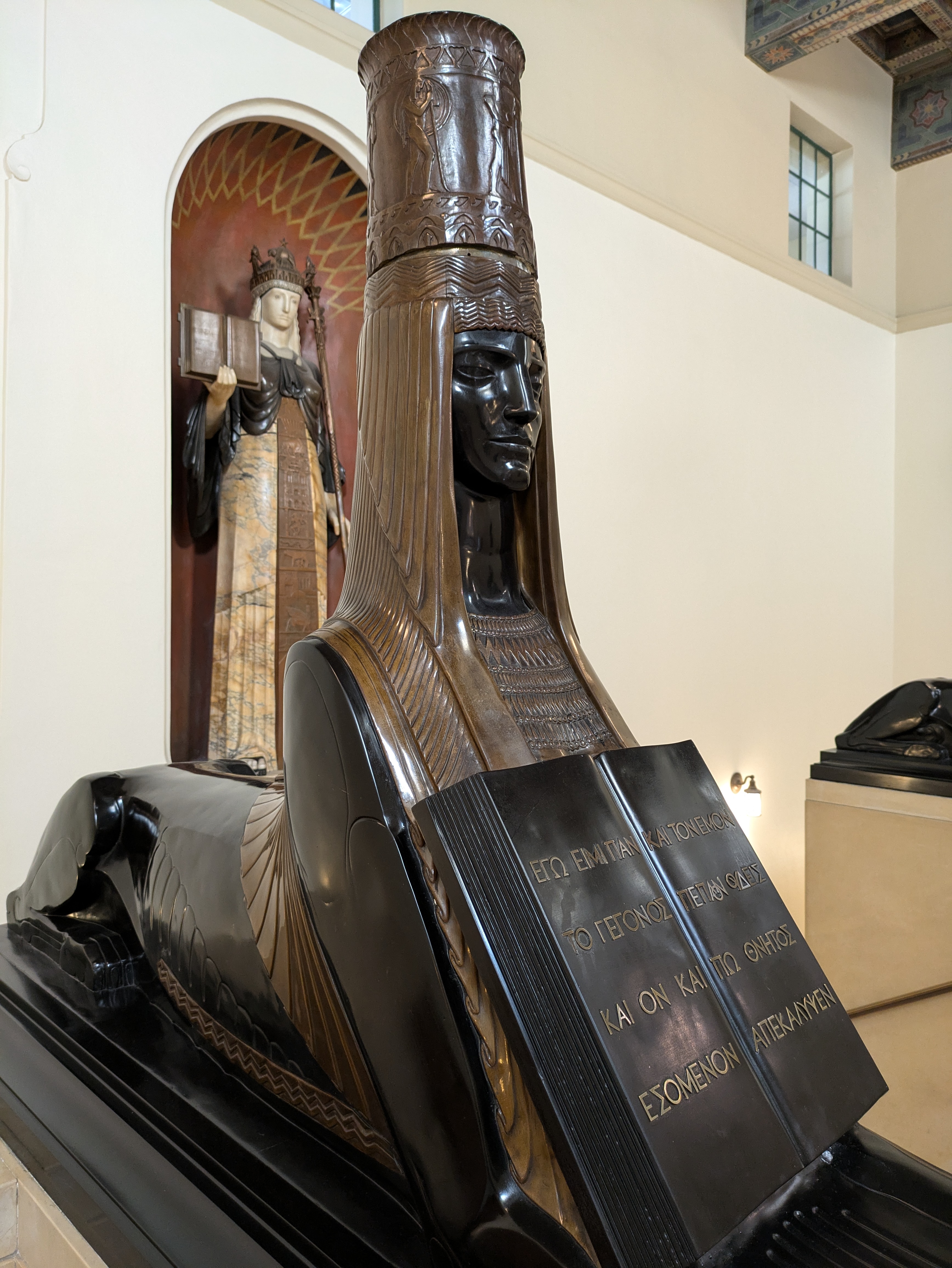 It was off this reputation that Goodhue was commissioned to design Los Angeles’ new library. His early sketches of the library incorporated a dome and more ornamentation, based off of his Balboa Park work, but over time was refined into a more personal style inspired by a mix of influences. While designing it, he wrote to a colleague, “My Gothic is no longer anything like historically correct, and my Classic… is anything but classic… At Los Angeles, I have a Public Library in the same strange style I have been telling you about.” The ornamentation was gradually stripped away in favor of a simpler, more modernist design reflecting the Art Deco tastes of the time. The dome was replaced with a pyramidal tower, inspired by Goodhue’s interest in Egyptian history, which itself was invigorated in the popular imagination by the then-recent discovery of King Tut’s tomb. Goodhue would pass away in 1924 with the library design nearly finished, leaving it up to his local associate Carleton Winslow to see it through to completion.