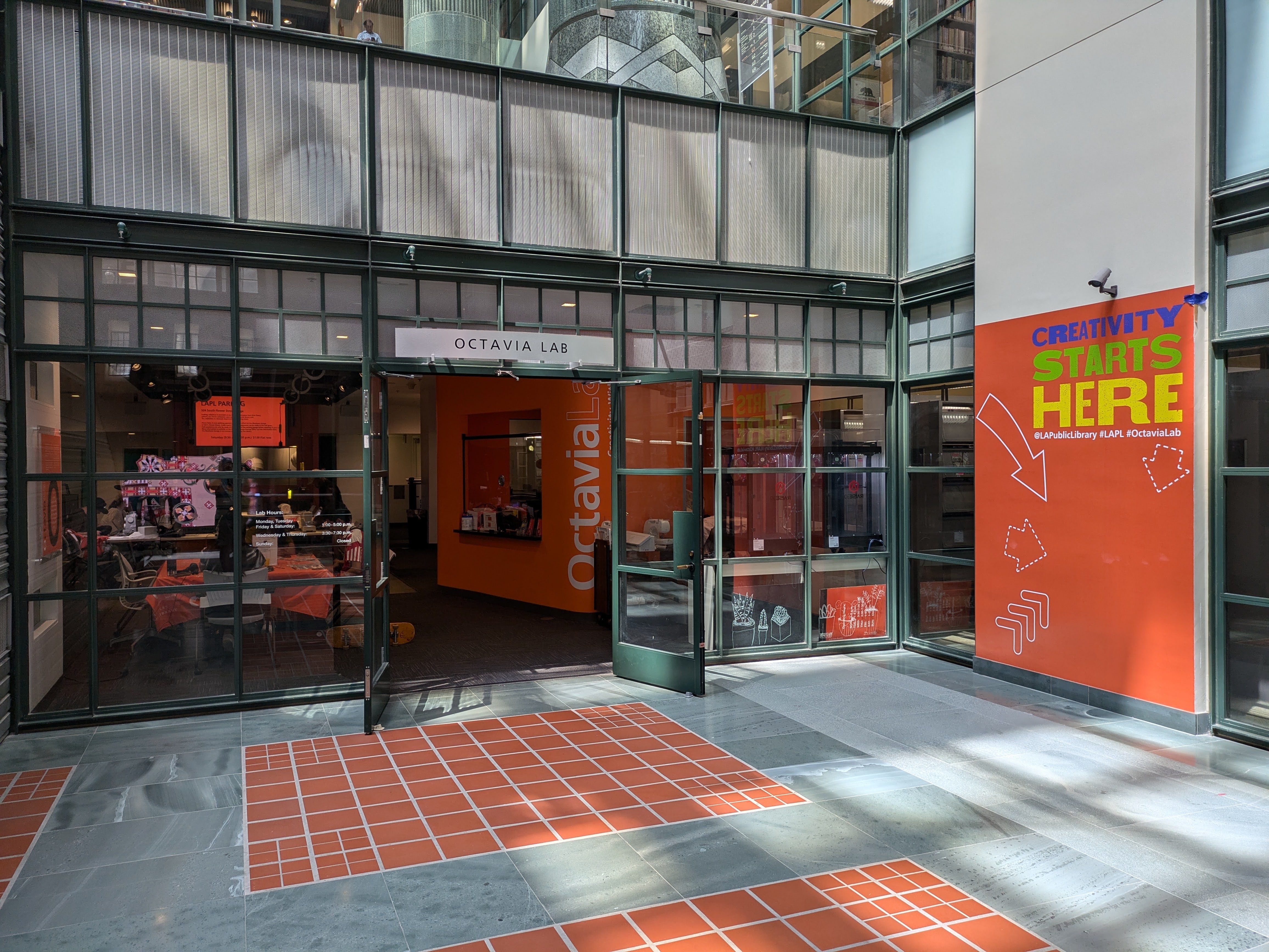 One of the oft-highlighted gems of Central Library is the Octavia Lab, a maker space on Lower Level 2 that provides tech resources for creators, including recording studios, 3D printers, computer stations, photography studios, large-scale printers, and even sewing machines.